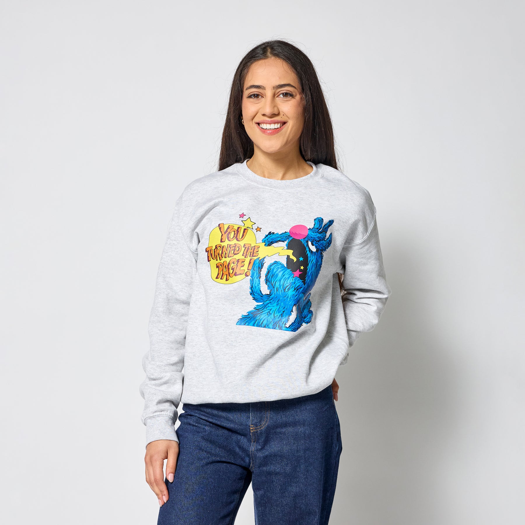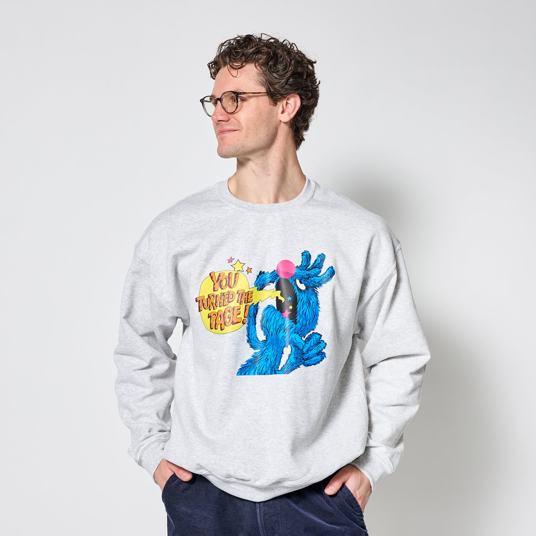 YOU TURNED THE PAGE! This crewneck captures the heart of the story, the nervous humour, the anticipation, and the iconic reveal waiting at the end! An iconic memory that feels just as comforting as the book itself!